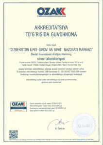 Akkreditatsiya qilingan Sinov laboratoriyasining davlat reestri