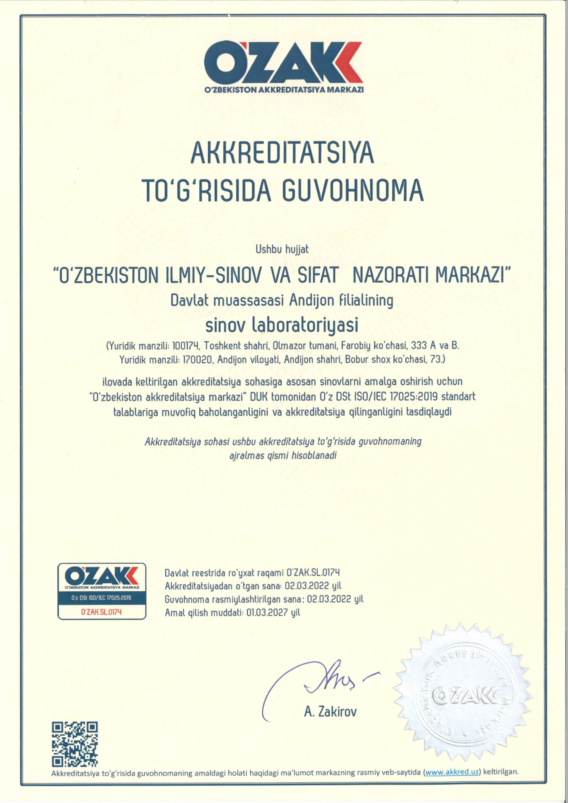 E-pochta: andijon@uztest.uz, uztest@exat.uz, info@uztest.uz