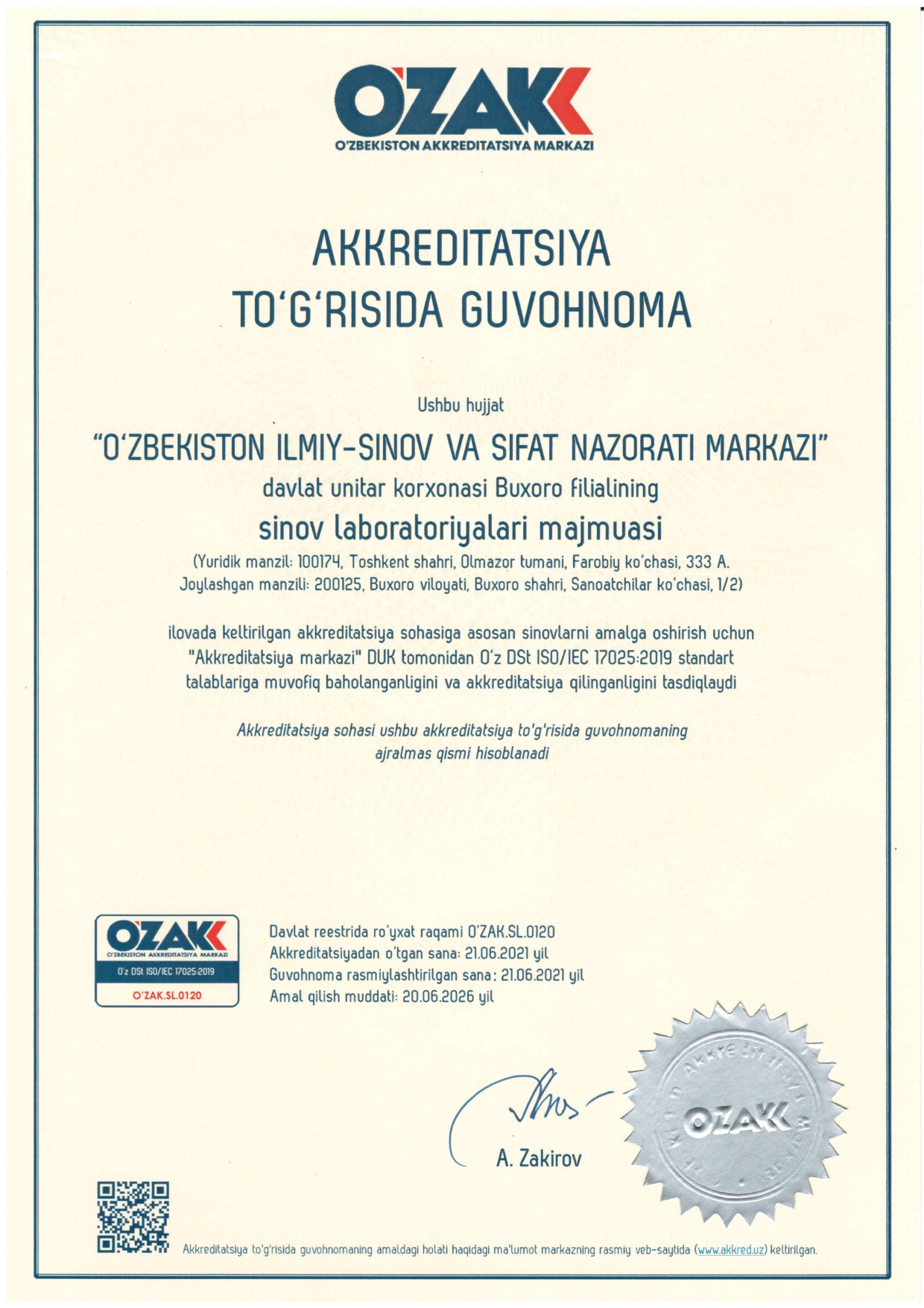 E-pochta: buxoro@uztest.uz, uztest@exat.uz, info@uztest.uz