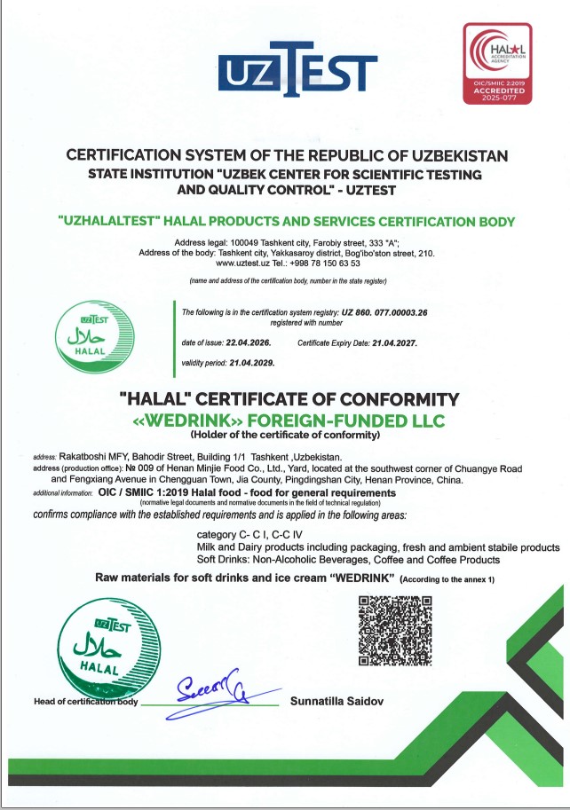 Bosh sahifa » Ishlab chiqarish boʻlimlari » Halol mahsulot va xizmatlarni sertifikatlashtirish » Sertifikatlashtirilgan korxonalar bo’yicha ochiqlangan ma’lumotlar