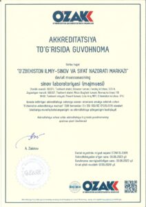 Akkreditatsiya qilingan Sinov laboratoriyasining davlat reestri