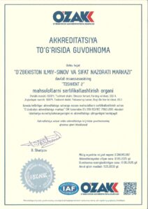 Akkreditatsiya qilingan Sertifikatlashtirish organining davlat reestri