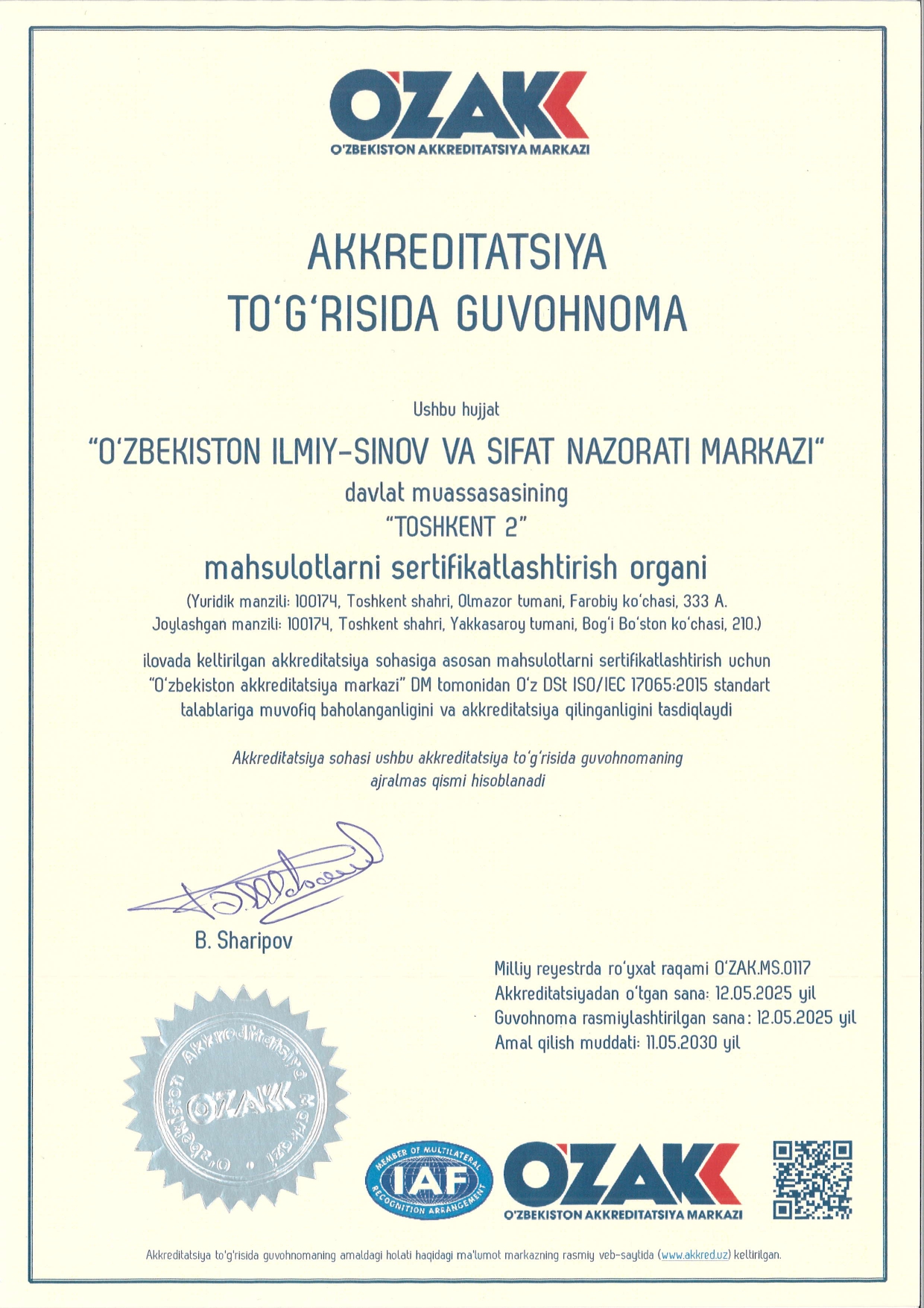 «Toshkent-2» sertifikatlashtirish organining xodimlari haqida ma’lumot
