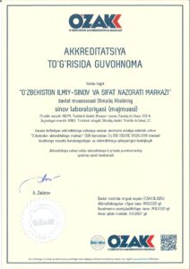 Akkreditatsiya qilingan Sinov laboratoriyasining davlat reestri